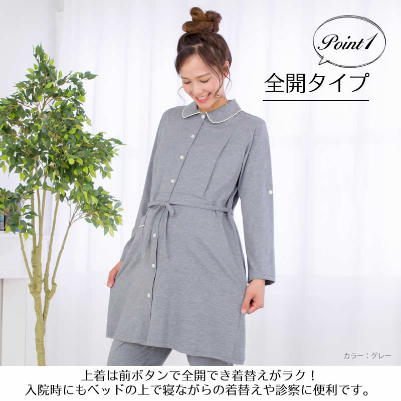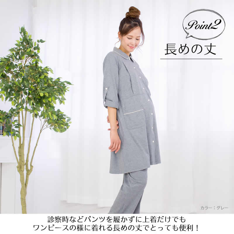商品概要 便利な機能がたくさん詰まった、ママの声からうまれたマタニティパジャマ! 全開タイプ:上着は前ボタンで全開でき着替えがらくらく、出産で入院時にもベッドの上で寝ながらの着替えや診察に便利! 長めの丈:診察時などパンツを履かずに上着のみでもワンピースの様に着れる便利な長めの丈でとっても便利! 両サイド授乳口付き:左右それぞれからさっと授乳が出来る、両サイド授乳口付き ウエストリボン付き:体型の変化に合わせてウエスト調節ができ、産前産後も活躍。